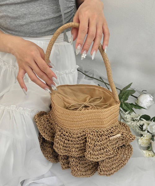 mellowneonのロゴプレート付きのバッグが登場。フリルデザインがポイントで、夏らしい素材感が浴衣やリゾートシーンにぴったりです。・中に巾着がくっついている仕様になっており、大容量◎ペットボトルや日傘も収納可能です。・内ポケット付き鏡やリップをすぐに取り出せるのでとても便利です。軽量で持ちやすく、長時間のお出かけにも☆彡シーズンムードを高めてくれる必須アイテムです。着用の商品写真は、サンプルでの撮影のため、色味や加工の見え方に若干の違いがある場合がございます。予めご了承ください。また、お使いの端末やモニターによってもお届けの商品と多少の差が生じる可能性がございます。