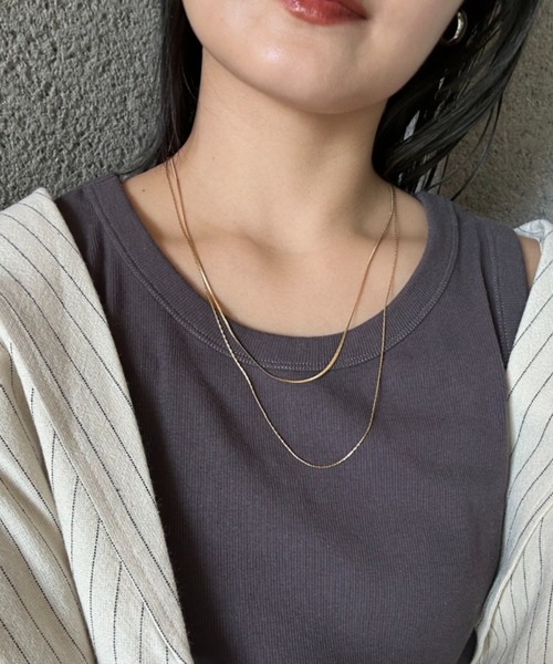 胸元に、洗練された輝きを添える2連のスネークチェーンネックレス。 滑らかなスネークチェーンが、光を繊細に反射し、上品な印象を与えます! シンプルなデザインながら、2連にすることで、さりげない存在感をプラス。 重ね付けされたチェーンが、デコルテを美しく彩り、ワンランク上のお洒落を演出します! 素材には、ステンレスを使用。 金属アレルギーを起こしにくく、変色しにくいのが特徴です。 普段使いはもちろん、特別な日の装いにも、安心して身に着けていただけます。 Tシャツやニットなどのカジュアルな装いには、程よいアクセントを。 ワンピースやブラウスなどのフェミニンな装いには、上品な華やかさを添えてくれます♪ オフィススタイルにも合わせやすいので、シーンを選ばず活躍します!! ■長さ 長いネックレス 60cm 短いネックレス 50cm ■重さ 5.2g ▼気になる商品をお気に入り登録 ハートをクリックして《お気に入り登録》がオススメです! ※画像の商品はサンプルを使用しております。実際の商品と若干の仕様が変更になる場合がございますので、予めご了承の上ご注文くださいますようお願いいたします ※屋外の光や照明の当たり具合で、実際の商品の色味とカラー別画像の色味に若干の違いが発生する場合がございます。詳細画像と併せてご確認の上、ご注文いただきますようお願い致します。 ※独自のタイムセールなどの施策により、実店舗と価格差が発生する場合がございます。 ※実際の店舗在庫につきましては、各店舗に直接お問い合わせください。