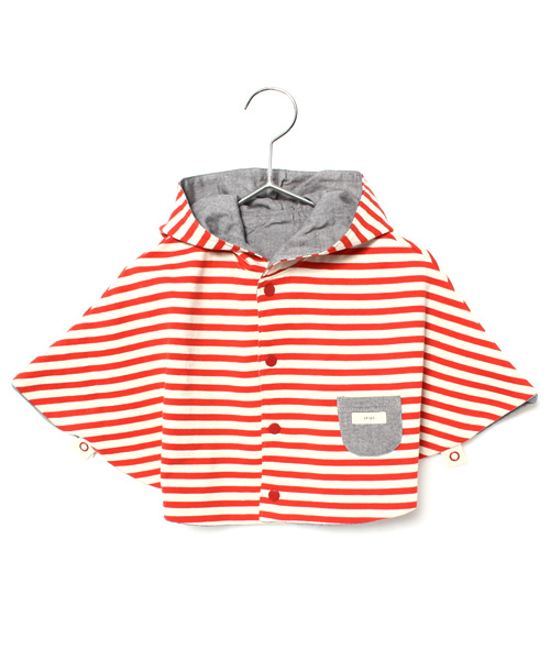 SHIPS KIDSのオリジナルのマントです。天竺ボーダー×ダンガリーのリバーシブルマント。こちらのマントはお袖を通さないので楽に着脱できるのが特徴的です。両裾に付いたスナップボタンで手を出す袖口も作れます。冷暖房など、屋内外の気温の変化に応じてすぐに着脱の出来るマントはベビー時期に活躍します。※末永く愛用頂く為に、アテンションタグ・洗濯ネームを必ずご確認の上、着用又はお取り扱い下さい。 SHIPS各店へは下記品番にてお問合せください。型番:514-04-0052