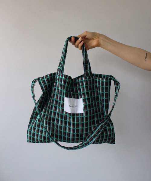 カジュアルなチェック柄が目を惹く、使い勝手抜群の2WAYトートバッグ。持ち手とショルダーの2WAY仕様で、用途やコーデに合わせて使い分けできる万能アイテムです。軽やかな素材感で、普段使いやお買い物、通学・通勤など幅広いシーンで活躍します。A4サイズもすっぽり入るゆったりサイズと、マチ付きの収納力も◎フロントのロゴパッチがさりげないポイントに。詳細補足 開閉:ボタン内ポケット:チャック付きポケットA4収納:可能紐調整可:不可※生地の裁断箇所によりチェックの柄の出方に違いが生じます。【SANSëLF】▼お気に入り登録をおすすめします▼♡をクリック!お得なセール情報や、人気完売商品の再入荷情報ラスト1点の通知など、耳寄りなお買い得情報をいち早く受ける事ができます。ブランド【SANSëLF】のお気に入り登録もご一緒にお願い致します。▪︎取扱注意事項※サイズは、測定方法と測定者によって多少の誤差がありますのでご了承下さい。(平置き採寸)※生地の素材上、においが気になる場合がございます。 その際は風通しの良い所で陰干しして頂くと、ほとんど感じにくくなります。※湿気が少なく、日光等が直接当たらない通気のよい場所に保管してください。※水に濡れてしまった場合は、柔らかいきれいな布で素早く水気を取り、陰干ししてください。※ご購入の際は色・サイズを必ずお確かめの上、ご購入下さいませ。※お使いのモニターや端末により、質感・色合いが実際の商品と異なって見える場合がございます。※着用画像は撮影状況や光によって、多少異なる場合がございますので置き画像をご確認下さい。※デニムを使用した製品は、インディゴ染めをしています。汗や摩擦により移染しやすいので、白色、淡色の組み合わせや重ね着はお避け下さい。※レザー製品(合皮も含む)は、素材の特性上徐々に劣化し固くなったり表面がひび割れてくることがありますのでご了承ください。また、熱に弱いためアイロンやドライヤーはかけないでください。※無理な詰込みや、鋭利なものの詰込み、極端に重たいものは入れないでください。※中に入れたものが落ちることがありますので振り回さないでください。※金属を使用している商品に関して、金属アレルギーや肌に異常を感じた方は、商品のご使用をおやめいただき、専門医にご相談下さい。