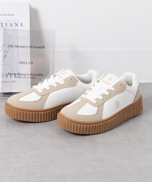 正統派ブランド" U.S. POLO ASSN."から厚底スニーカーが登場。 ■Point 上質なPUレザーを使用し、高級感のあるスニーカー。 ベーシックなデザインに”ダブルホースマン”を配置し上品なポロらしさを演出しました。 ブラックはワントーンでまとめ、キレイ目な印象に。 ホワイトはソールをベージュにしたことでカジュアルながらフェミニンな雰囲気です。 厚みのあるボリュームソールはスタイルアップ効果も抜群。 さらにクッション性も兼ね備えているので、足への負担を軽減し長時間歩いても疲れづらい一足です。 ■coordinate ・ミニスカートとソックス合わせでフェミニンなスタイリングに。 ・スラックスやデニムの足元に合わせ、きれいめカジュアルに。 ・ワンピースやバルーンスカートの足元に合わせてカジュアルダウンするのもオススメです。 ・POLOシリーズでまとめてPOLOコーデの完成です。 【U.S.POLO ASSN ユーエスポロアッスン】 U.S.POLO ASSN.(ユーエスポロアッスン)とはUnited States Polo Association(ユーエスポロアソシエーション)の略で、全米競技ポロ協会に認定された唯一のブランドです。 アメリカ唯一のPOLO競技のオフィシャル団体として1890年に設立されました。 米国を中心にバッグやアパレル、腕時計他幅広い商品展開を行っており、世界150カ国、公式ショップ1000店舗以上で販売が行われています。 ≪お気に入り登録≫でお得な情報盛りだくさん ・“商品のお気に入り登録”で再入荷通知やラストの通知、セール通知も受け取ることができます。 ・“ブランドのお気に入り登録”で新商品や再入荷など、お得な情報を受け取ることができます ※ご注文いただいた予約商品のお届け時期の確認は、注文履歴ページより行えます。