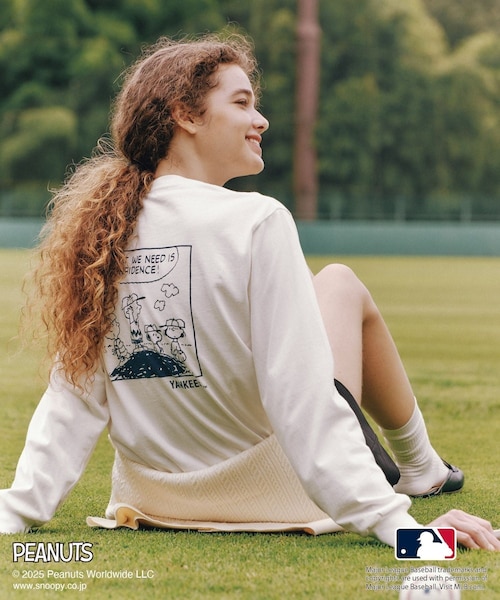 "Life With Baseball" 野球を好きな方や家族で野球が好きな方、スヌーピーがお好きな方へ。 【素材感】 ・カジュアル感のあるコットン素材の天竺。 【デザイン・シルエット】 ・MLBとPEANUTSとROPE' PICNICによるスペシャルコレクションシリーズ。 ・一つ一つストーリーを持ったアートを落とし込み。 ・大きすぎず、小さすぎないサイズのロンTに。 ・胸元はロゴなのでシンプルな雰囲気。 ・後ろはインパクトのある大きめアートを配置し、着やすさ&可愛らしさをプラス。 ・ヤンキースはみんなで野球を楽しんでる様子のアート。 ・ドジャースは三人が並んでいる印象的なアート。 ・パドレスは他チームとは少し変えて、スヌーピーがメインのアート。 【カラー】 合わせやすいホワイト系2色とカジュアル感のあるベージュの3色展開。 ・ヤンキース:ホワイト(10) ・ドジャース:ホワイト系(12) ・パドレス:ベージュ(27) 【スタイリングポイント】 ・シャンブレーデニム調シャツ(品番:GDH55000)を腰に巻いてテレコアイラインをスタイリングしたり、ボリュームスカート合わせがおすすめ。 ----------------------------- 裏地:なし 光沢感:なし 透け感:ややあり 伸縮性:あり 生地の厚さ:やや薄手 季節:春、秋 ----------------------------- ※撮影時の光、お使いのモニター環境によって色の見え方が違う場合がございます。 【モデル着用サイズ】 カラー画像、詳細画像1〜19枚目:身長168cm 着用サイズ:F 詳細画像20〜30枚目:身長175cm 着用サイズ:F