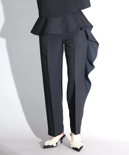 Ranerrh _ ラネリ 『花々の祝福と祈りをまとう装い』 Ranunculus Nerine Myrrh を織り込んだ造語。 人生の節目にあたる大切な瞬間、Ranerrh が寄り添い、特別なシーンを彩ります。 2025SPRING&SUMMERよりBlack Formalスタート デザイナーとしての長年の経験を活かし、デザイン性・体型カバー・機能性、様々な要素を取り入れ、“自身の持てるフォーマルウェア”をご提案させていただきます。 30代~60代幅広い年齢層をターゲットにどんなシーンでも女性が美しく輝けるお洋服を提案いたします。 <Material> 握るとポンと跳ねる反撥力のあるダブルクロス。 薄めの肉感ながら、反発力によって落ち感がなく、しっかりとシルエットを形作る事の出来る素材です。 表面には綾目が走り、しっかりとした見た目に反し軽く、ふわっとしたシルエットを作り出します。 ポリエステルでシワになりにくいイージーケア性にも優れています。 <Desgin> 素材の特性を活かしたフリルパンツです。 軽く、ポンと跳ねるような素材感は、波打つフレアーをふわりと軽やかに、そして美しく描き出しています。 シルエットはほぼストレートで、少しのテーパード。 細身のテーパードに比べ、メンズライクなシルエット。 フリルの女性らしさを打ち消し、程よいバランスに仕上げています。 同じく、パンツに走る縦のセンタープリーツも、フリルの曲線と直線とで相反しながらシルエットをシャープな見え方にしています。 ウエスト部分はヨーク仕立て。 後ろウエストは光沢のあるリブを使用。 サイズ差の大きいウエストからミドルヒップに掛けて、フレキシブルに対応します。 *脇ポケット付き [関連商品] 同素材になりますので、セットアップで着用頂けます。 8254-050801 ダブルクロスデザインジャケット Ranerrh(ラネリ)Black Formal 喪服としてはもちろん、セレモニー、結婚式、入卒式など、幅広いシーンでも着回しのできるフォーマルウェア。 フォーマルだけでなく、仕事着、オフの日にも活躍するリアルクローズな1着です。 少人数のデザイナーズブランドだから出来ること、細部までこだわったデザイン、やりたいことを妥協せず、着ていただくお客様の気持ちを一番に考え物作りしています。 Ranerrhは日本の素材・すべて国内で縫製生産。 是非Ranerrhのこだわりが詰まった1品をお手に取っていただければ嬉しいです。 ★シーン お葬式 お通夜 葬儀 告別式 法事 お墓参り 冠婚葬祭 お別れ会 四十九日 三回忌 式典 セレモニー 卒園式 卒業式 入園式 入学式 お宮参り 食事会 パーティ 結婚式 二次会 その他普段着 ★キーワード 付け替えボウタイ,取り外しボウタイリボン,喪服,礼服,黒,正喪服,準喪服,お葬式,お通夜,葬儀,葬式,お墓参り,お宮参り,お食事会,セレモニー,入学式,卒業式,入卒,卒入,入園式,卒園式,冠婚葬祭,お宮参り,卒業式,参観日,七五三,家族葬,慶弔,法事,喪主,フォーマル,フォーマルウェア,オシャレ,オケージョン,セミフォーマル,スーツ,レディース,ワンピース,デザイン,ファッション,ブラックフォーマル,ママコーデ,体形隠れる服,デザイン喪服,おしゃれな喪服,着回し,体型カバー,アンサンブル,七分袖,二の腕カバー,膝下,7号,9号,11号,13号,15号,20代,30代,40代,50代,60代,小柄,華奢,大きめサイズ,ミセス