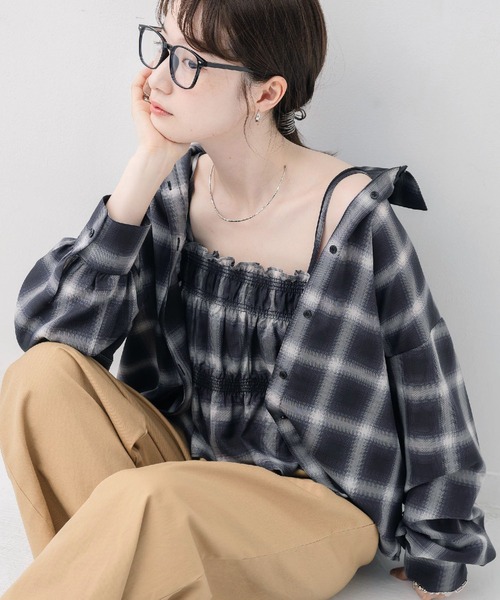 <秋を先取るチェックシャツのセットアイテム> ▼デザイン 大人気のセットアイテム。 シャーリングデザインが可愛いキャミと、大き目シャツがセットになりました。 キャミとしてはもちろん、シャツの上からビスチェとして着て頂くこともできるので このセットでもいろんな着回しを楽しんで頂けます。 カラー展開も秋らしく、これからのシーズンに取り入れたい1枚です♪ ▼コーディネート セットでも2通りの着回しが可能! ワンピースにシャツを羽織ったり、別のTシャツにビスチェ使いするなど別々でも着て頂けます。 ▼セット内容 ・シャツ ・キャミソール ------------------------------ 生地感:インナー:普通 シャツ:普通 伸縮性:インナー:ある シャツ:なし 透け感:インナー:なし シャツ:なし 裏地:なし ------------------------------ ▼ブランド紹介 RETRO GIRL (レトロガール) 自分らしい“ベーシックアイテム”と 新しい自分の”トレンドアイテム”が 見つかる場所 今らしいファッションを楽しむ 女性のためのブランド #シャーリング #ビスチェ #キャミ #セットアイテム #チェック柄 #秋アイテム #シャツ ▼注意事項 ※撮影環境やモニター環境によって実際の商品とお色味が 多少異なってみえる場合がございます。 品番:RE556623T003 / 品名:ビスチェ付きチェックシャツ