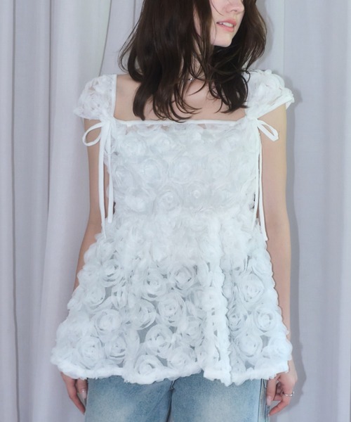 発売前からお問い合わせの多い新作ブラウス。 ローズモチーフのチュール生地を贅沢に使用し、 裾がふわっと広がるシルエットに。 肩紐やリボンは取り外し可能で、 5wayで着用可能となっております✨ ・肩紐にアジャスター付きでお好みに丈感を調節できます。 ・胸下部分がゴムになっており、ウエストをきゅっと細見えさせつつ、ゴムなので苦しくなくご着用いただけます。 骨格やコーデに合わせてアレンジしていただけます! 素材の特性上、透け感がありますので、同系色のインナーのご着用を推奨しております。 着用の商品写真は、サンプルでの撮影のため、色味や加工の見え方に若干の違いがある場合がございます。予めご了承ください。 また、お使いの端末やモニターによってもお届けの商品と多少の差が生じる可能性がございます。
