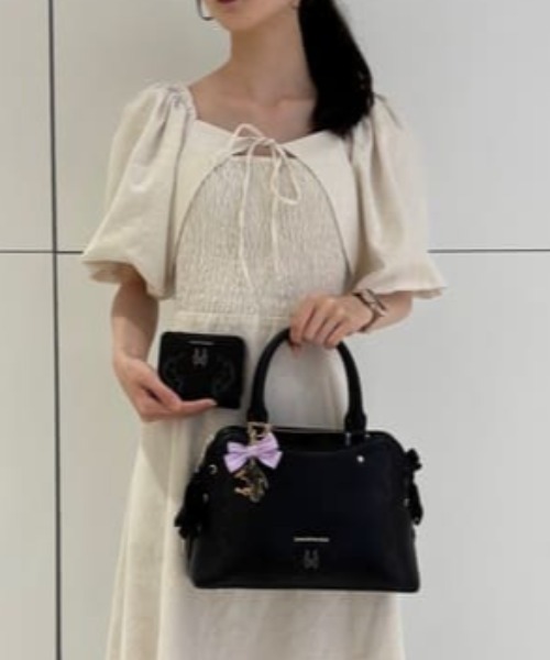 ◇SAMANTHAVEGA(サマンサベガ)のディズニーヴィランズコレクション 「マレフィセント」 ハンドバッグ サマンサベガからディズニーヴィランズコレクションが登場! 「アースラ」、「エヴィルクイーン」、「クルエラ」、「ハートの女王」、「マレフィセント」をそれぞれイメージしたモチーフやカラーをデザインに落とし込んだ全15アイテムがラインナップ。 ▽デザイン ・『眠れる森の美女』 に登場する魔女「マレフィセント」をイメージしたイバラをプリントし、角モチーフの金具をデザイン。 ・バッグのサイドにはレースアップされたリボンがポイント。 ▽機能性 ・ショルダー付きで2WAYで使用可能です。 ・内装は薄マチポケット付き。小物も収納しやすいです。 ・正面と背面にはポケットがあり、スマートフォンやパスケースなどすぐに取り出したいアイテムの収納に便利です。 【対応しているもの】 ・長財布 ・ペットボトル縦/横向き(500ml) FREE:幅26cm/高さ19.5cm/マチ12cm/持ち手上がり11.5cm/ショルダー最長148cm/ショルダー最短136cm/重さ605g/