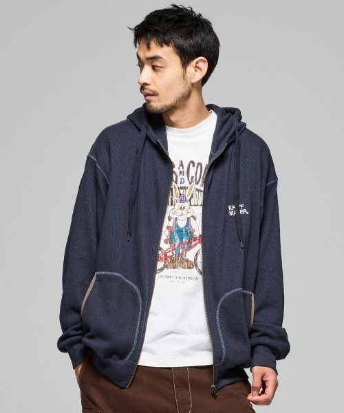 オリジナルのハニカムサーマル素材を使用したフルジップジップパーカーです。左胸位置にワンポイントロゴ刺繍をプラス。ベーシックなデザインながらも、ファスナーが天井よりも上がるように設計し、ボリュームネックとして着用できるデザインになっています。夏以外は羽織りからインナーまでロングシーズン活躍します。幅広いスタイリングで着まわせるレイヤードアイテムです。-------------------------シルエット:スタンダード生地の厚さ:中肉透け感:なし(ナチュラルのみややあり)伸縮性:あり裏地:なしケア方法:洗濯機洗い可(ネット使用)-------------------------●KRIFF MAYER(クリフメイヤー)家族みんなの毎日に楽しさと笑顔をお届けしたい。クリフメイヤーの服にはそんな思いがたくさん詰め込まれています。メンズ・レディース・キッズ、更にドッグウェアまで展開。何気ない日々が特別な思い出に変わる瞬間を演出する、ベーシックかつオリジナリティーあふれる新しいデイリーウエアを提案します。