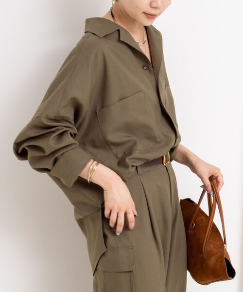 ◇25AW◇Rie Miller◆Point・Rie Miller秋の新作、オープンカラービッグシルエットシャツ・ナチュラルなドロップショルダーに加え、腕を動かしやすいよう工夫された「マチスリーブ」がポイント・立体感を保ち美しくなめらかなカーブを描く衿もこだわりポイント・環境に配慮したリサイクルポリエステルを使用したサスティナブルなツイル生地を採用・やや薄手ながらも程よい落ち感とソフトな風合いが特徴で、シワになりにくい素材・同素材のカーゴパンツ(5-0037-5-09-003)とセット着用もおすすめ●お取扱い上のご注意●末永くご愛用頂くために、アテンションタグを必ずご確認の上、着用又はお取り扱い下さい。気になる商品は、お気に入り登録がオススメです!クーポン情報、入荷情報が、通知されるようになります。※手洗い可※店頭及び屋外での撮影画像は、光の当たり具合で色味が違って見える場合があります。商品の色味は、スタジオ撮影の画像をご参照下さい。※商品画像に関しては出来る限り忠実に表示出来るよう努めておりますが、お客様がご利用のモニターの設定及び特性により、実際の商品と比較し色味に若干の誤差が生じる場合があります。※画像の商品はサンプルとなりますので実際の商品と仕様、加工、サイズが若干異なる場合がございます。