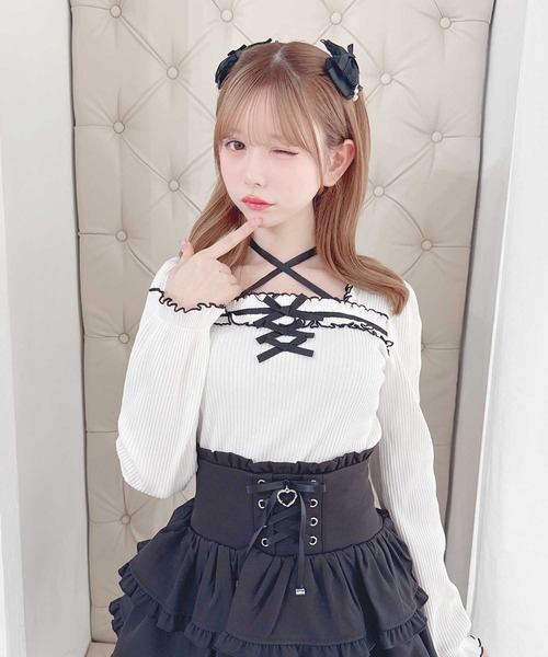 MARS(マーズ) mars Princess Melody(プリメロ) \お気に入り4.500人突破!!/ トレンドのディテールをぎゅっと詰め込んだカットソーが登場! デコルテを綺麗に見せてくれる首元クロスリボンとたっぷりなメローフリルが視線を奪う主役級トップス♪ 顔周りをすっきり見せてくれるスクエアネックで華奢見えが叶います。 胸元に施されたたっぷりフリルとトリプルリボンは全体に立体感を引き出しガーリーな存在感を高め、量産・地雷コーデにもぴったり。 柔らかく肌馴染みの良いリブ素材で動きやすいのも嬉しいポイントです。 ※モデル着用画像は画像の加工をしておりますので、商品の色味などは詳細画像にてご確認ください。 【お買いものをお楽しみ頂くちょっとしたポイント♪】 ☆商品のお気に入り登録をすると♪ 完売カラーの再入荷通知や、ラスト1点の通知、セールの通知など商品の情報をいち早く受け取る事ができます!! ★ブランドのお気に入り登録♪ 新商品や再入荷などいち早くMARSのお得な情報をGETできます!! ☆SNS情報 【公式】Instagramでも新着アイテム&トレンドアイテムを毎日発信中♪ TikTok、Xもチェックしてみてね!! <返品・キャンセルについて> ・着用・洗濯後の返品・ご交換はお断りしております 。 ・商品到着後、着用前に商品を確認して頂きますようお願い致します。 ・タグの無い商品は返品、ご交換はでき兼ねますのでご了承ください。 撮影、照明の関係で、実際のお色味と若干異なる場合がございます。 また表示のサイズ感と実物は若干異なる場合もございますので、予めご了承ください。 ※ご注文いただいた予約商品のお届け時期は、注文履歴ページよりご確認下さい♪