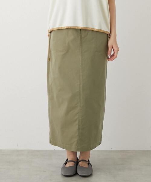 コットン×ポリエステル×テンセルの中肉ストレッチ素材のスカート。 テンセル特有の柔らかな素材感でカジュアルながら上品な1枚に仕上がっています。 すっきりしつつボディラインを拾いすぎないサイズ感のボックスシルエットに ベイカーディテールで着回しのしやすさも◎ フロントファスナー開き、ウエストサイドから後ろにかけてゴム仕様。 両サイドにポケットあり、バックスリットあり。 ※画像の商品はサンプルです。実際の商品と色味、仕様、加工、サイズ、素材等が若干異なる場合がございます。
