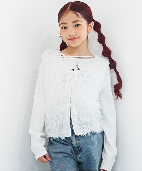 algy(アルジー)のベスト・ジレ「2WAYテープヤーンベスト」。 これ一枚でいつものコーディネートがワンランクUP☆彡 XXS・・・125~135cm XS・・・135~145cm S・・・145~155cm M・・・155~165cm 【 algy ーアルジー ー 】 『おしゃれを楽しみたいティーンズのリアルクローズ』 着たい 欲しい トレンド・・・ 全部そろう小中学生向けブランドです。 【取り扱い表示】 40℃を上限に洗濯機で洗濯、デリケートアイテムモード、ネット使用、漂白剤禁止、色物は同系の色と一緒に、洗濯後直ちに取出し、タンブル乾燥不可、日陰で吊り干し、アイロン禁止、商業ドライクリーニング不可 【ご注意事項】 この素材は、着用中の摩擦や洗濯により毛羽付着や毛羽脱落が生じることがあります。出来るだけ美しくご利用頂くために次のことにご留意下さい。 ○着用中、毛羽が他の商品に付着することがあります。 ○毛羽が他に付着した場合は、テープやブラシで除去して下さい。 ○他の製品とは一緒に洗わず単独でお洗濯して下さい。 ○タンブル乾燥はお避けください。 ※商品により多少の誤差が生じる事がございます。あらかじめご了承下さい。 ※ご使用のパソコンやブラウザの環境により、実際の色とは多少異なる場合がございます。 ※モデル着用写真についてはイメージの為、実際の商品とカラーや仕様が異なる場合がございますので、商品画像をご覧ください。