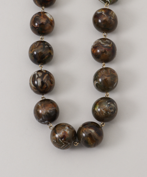 弊社販売カラー:メーカーカラー ブラウン(020):MARRON カーキA(037):VERT イエロー(080):YELLOW 弊社販売サイズ:メーカーサイズ フリー(009):フリー 【2025AW】 VERMEIL par iena マーブル模様が美しい樹脂素材を使用した、存在感たっぷりの別注ネックレス 落ち着いたカラーリングで幅広いコーディネートに合うひと品。 程よいボリューム感が顔周りに華やかさをもたらし、スタイリングのアクセントとして活躍してくれます。 長さの調整も可能なので、その日の気分やスタイルに合わせてお使いいただけるアイテムです。 【Francine Bramli /フランシーヌ ブラムリ】 イヤリングやネックレス、ヘアアクセサリーを手掛けるパリのブランド。 一つ一つ手作業で作られ、技術の高さと遊び心を感じられる立体的なフォルムが特徴です。 【お取り扱い等について】 ・取り扱いについては、商品についている品質表示でご確認ください。 ・照明の関係により、実際よりも色味が違って見える場合があります。 またパソコン・スマートフォンなどの環境により、若干製品と画像のカラーが異なる場合もございます。 ・商品の色味は、商品アップ画像をご参照ください。 ・こちらの商品は、VERMEIL par iena での取り扱いになります。 直接店舗へお問い合わせの際は VERMEIL par iena店舗へお願い致します。
