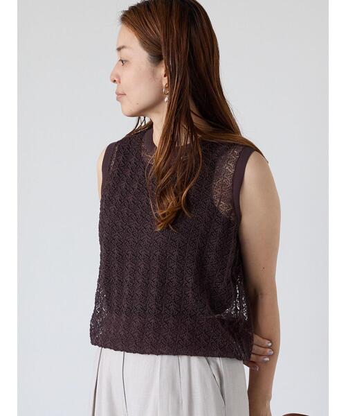 繊細なレース編みで上品な印象に仕上げたノースリーブニット。 軽やかな透け感がシーズンらしい爽やかさを演出してくれます。 合わせるインナーによって、カジュアルにもキレイめにもスタイリングを楽しむことができる1着。 コーディネートも新鮮な着こなしに決まるアイテムです。 ※商品画像は、撮影環境やお客様のご利用のPC・スマートフォンのモニター環境などにより実物と色味に差異がある場合がございます。