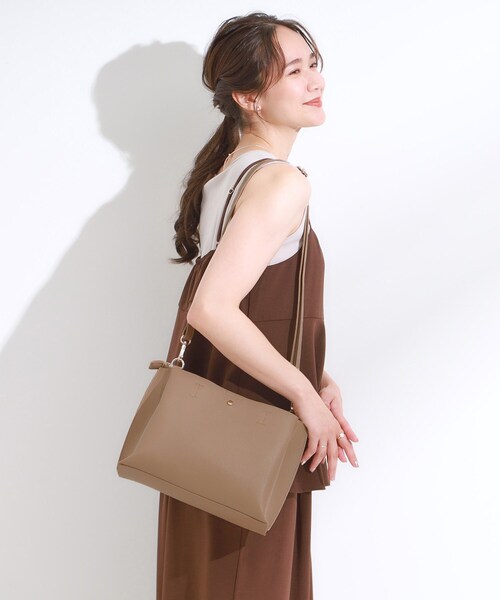 【デザイン】 本体に軽量素材を使用したトートバッグです。 程よいシボ感のある素材を使用しきれいめに仕上げましたので、普段でも通勤でもおすすめです。 ファスナーの付いたメイン収納の前後に2つの大きめ収納ポケットがあり、3層なので荷物の整理に便利です。 持ち手はぷっくりしているので、持った時にフィット感があり持ちやすい仕様です。 ハンドル根元に楕円の金具を付けていますので、ショルダーで持っている際などはハンドルを倒してご使用できます。 【機能】 取り外し可能なショルダー紐が付いているので両手を開けることもでき、シーンに合わせてトートと使い分けができます。 【仕様】 ・ポケット数:内側×3 ※照明の関係により、実際よりも色味が違って見える場合があります。また、パソコン・スマートフォンなどの環境により、若干製品と画像のカラーが異なる場合もございます。 店舗へのお問い合わせ商品番号:C70-04022 ●製品寸法: 00:高さ21cm 幅(上部)28cm 幅(下部)28cm マチ9.5cm 持ち手上がり19cm 付属ショルダー対応サイズ64~119cm 備考:重量:約400g(サンプルサイズ)