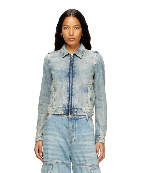 ストーンウォッシュとソフトダーティ加工のこなれた表情が魅力的なデニムジャケット「DE-CORB」。カジュアル感の強いカラーリングながら、セットインスリーブやコンパクトなフィットでラフになりすぎない印象に仕上げています。リヨセルがブレンドされたデニム地のため、ライトウェイトで着心地も快適。ジッパープルは定番のタイニーロゴにし、ディーゼルならではのシャープなアクセントにしています。