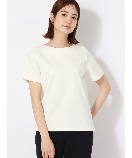 きれいな表面感と、抜群のストレッチ性が人気のポンチカットソー。ジャケットのインナーに重宝する定番シリーズに、撥水加工が加わり機能面がさらにアップデートしました。 ・従来のすっきりとしたシルエットからややゆとりを出し、1枚でカジュアル着にも最適 ・袖口にはスリットを施し、気分や気温に応じて折り返せる仕様に ・1枚でも透けにくいポンチ素材。適度なハリ感があるため体のラインをきれいに見せてくれる◎ ・洗っても毛玉ができにくく型崩れも起こしにくいため、出張時のお供にも最適 【仕様】ボートネック/半袖 【洗濯表示】洗濯機可(ネット使用・弱水流) モデル:167cm B79cm W58cm H87cm 着用サイズ:38 【38】着丈60.0cm バスト94.0cm 肩幅35.0cm 袖丈22.0cm ※お届けする商品の下げ札・タグに記載の数値は目安としてのヌードサイズ(体の寸法)のため上記表示と異なる場合がありますが、誤表記ではございません。 ※同サイズまたは同一商品でも、生産の過程で1.0cm~2.0cm程度の個体差や着用感の違いが生じる場合がございます。 ※カラー名は管理用の表記となります。実際の商品の色味は商品画像をご確認ください。 ※商品画像はできる限り実際の色に近づけて掲載しておりますが、パソコン環境により色味に誤差が生じる場合がございます。予めご了承下さいませ。 【おすすめシーン】 オフィスカジュアル、ビジネス、仕事、通勤 お出かけ、ショッピング