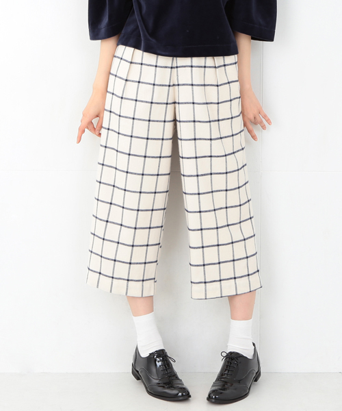 チェックプリントが可愛い主役パンツ♪ ちょっぴり起毛した秋冬らしい素材を使用。ストレートシルエットにクロップド丈が着こなしやすいひと品です。 ウエスト部分はフロントホックでデザイン性をキープ。バックはゴム仕様で、履き心地にもこだわりました。 スウェットでもニットでも☆冬のおしゃれを楽しくするおすすめアイテムです♪ ※商品画像はサンプルのため、色味やサイズ等の仕様に変更がある場合がございますので、予めご了承ください。