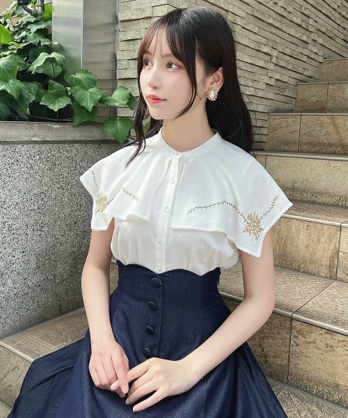 ■デザインポイントスクエア型のケープ衿がとびきりクラシカルなブラウス。衿にあしらわれた繊細なローズ刺繍が他に無い特別感を演出してくれます。ノースリーブながらも、ケープ衿が肩回りと二の腕をカバーしてくれるのが嬉しいポイント◎■オススメスタイリングデニムスカートやカラースカートと合わせた着こなしがオススメです。ハンドバッグやパンプスなどのクラシカル小物でムードたっぷりに着こなして。======透け感:OFF WHITE…ややあり、PINK BEIGE…なし 裏地:なし生地感:柔らかめ======※裏返してネットに入れて洗って下さい。※アイロンは当て布を使用してください。▼an another angelus/アンアナザーアンジェラス『パリの裏通りにひっそりとたたずむ小さな隠れ家。その扉を開けると…』 懐かしくも新しいレトロ感をレディライクに表現し、大人の女性のワードローブを提案。50年代パリのメゾンからインスパイアされたモードなシルエットやクチュール感のあるディティールにこだわった「Mode of classic」のアイテムも展開中です。▼Fint/フィント50~70年代のクラシカルなヴィンテージデザインに トレンド感をプラスしたレトロ&ガーリースタイルをお届け。 古着屋で一点ものを見つけるような【ときめき】を感じられるブランドです。70s~90sストリートからイメージしたアイテムにレトロ&ガーリー要素をMIXしたトレンド感あるカジュアルアイテムが揃う「Pink Label」のアイテムも展開中!▼商品のお気に入り登録▼気になるアイテムの♡をクリックしてお気に入り登録すると残り1点の通知、完売カラーアイテム再入荷の通知、お得な通知が届きます。▼ショップお気に入り登録▼ショップからの新作商品やお得なイベント情報など、いち早くブランドからの情報を受け取ることができます。