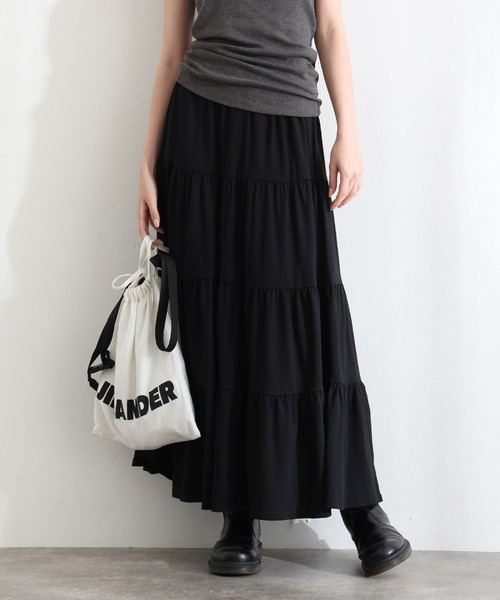 ■一枚でコーデを華やかに 華やかなティアードデザインが動きに軽やかさを与えるスカート。 たっぷりとしたフレアシルエットがエレガントでフェミニンな印象を引き立て、カジュアルなトップスとも相性抜群。 デイリーからお出かけスタイルまで幅広く活躍する、季節を問わない万能スカートです。 ■柔らかな綿100%天竺素材を使用 柔らかくて肌触りが良く、快適な着心地です。 歩くたびにスカートがふんわりと広がってくれます。 ■素材:綿100% ■伸縮性:あり ■裏地:なし ■ファスナー:なし ■透け感:なし ■付属品:なし ■サイズ展開 M-L(9号)、LL-3L(13号)、4L-5L(17号) =================== ☆お気に入り登録でお得な情報ゲット☆ ■商品のお気に入り登録 ・完売カラーの再入荷通知 ・ラスト1点の通知 ・セールの通知 ■ブランドのお気に入り登録 ・新商品の情報の受け取り ・人気商品の再入荷情報 ・いち早いブランド独自の情報の受け取り =================== ―― 《POURVOUS》プールヴー ―― フランス語で「あなたのために」を 意味する""POURVOUS""は、 上品でお洒落なファッションを提案し、 あなたの為の特別な時間を お手伝いするブランドです。 新作情報や着用動画など お得な情報は Instagram公式アカウントからチェック! ↓ @pourvousdress ――――
