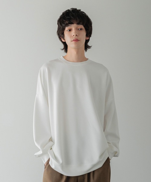 ■素材 綺麗めな表情で落ち感があり、肌触りもなめらかな素材を使用。 ストレッチも効いているのでリラックス感のある着心地です。 ■デザイン ほど良くオーバーシルエットなロングスリーブTシャツ。 ドルマンスリーブがポイントで、一枚でも様になるシルエットです。 柔らかい素材なので、ボリューム感も気にならず、ベーシックアイテムとして幅広いコーディネートでお使いいただけます。
