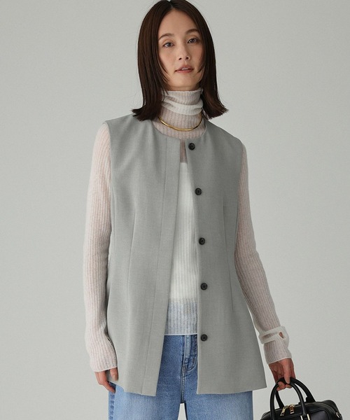 2025 AUTUMN COLLECTION着心地の良さと、女性らしいシルエットが魅力の上質ジレーーー◆DETAILポイント◆・上品な光沢と、着心地の良さが特徴のダブルクロス素材を使ったジレ。・ウエストシェイプしたペプラムデザインで甘すぎない女性らしいシルエット。・総裏仕様。・上質なMADE IN JAPAN素材。ストレッチ性に優れているほか、シワやピリングになりにくいのが特徴。・同素材アイテムとセットアップで着用すれば、セレモニーやオケージョンでも活躍。ーーー・秋は、ロンTや薄手のタートルを重ねての着用がおすすめ。・きれいめパンツでオケージョンにも、デニム合わせでデイリーにも。◆セットアップで着用いただけるアイテム(※別売り)◆ダブルクロス2タックワイドパンツ 品番#579943◆FABRICポイント◆・程よく肉厚で、梳毛ライクなダブルクロス素材。・防シワ性があり、ピリングしにくく、イージーケア。・縦横2WAYストレッチで楽ちんな着心地も魅力。・MADE IN JAPAN素材。【BABYLONE / バビロン】"Be myself" 好きな色 好きなかたち 好きな着こなし 自分の好きは自分だけが知ってる 自分らしい自分を好きでいたい時代のニュアンスを取り入れながらも まわりにとらわれない ブレないしなやかな女性たちへ【気になる商品は「お気に入り」登録を】ハートマークをクリックし、お好きなカラーを選んでお気に入りに登録すると在庫残り僅かの通知、再入荷通知などの情報を受け取ることができます。※商品の取り扱い方法につきましては、タグ等に記載されている「取り扱い上の注意」「洗濯表示」をご確認ください。※屋外での撮影画像は、光の当たり具合で色味が違って見える場合があります。あらかじめご了承ください。なお商品の色味は、スタジオ撮影の画像をご参照ください。