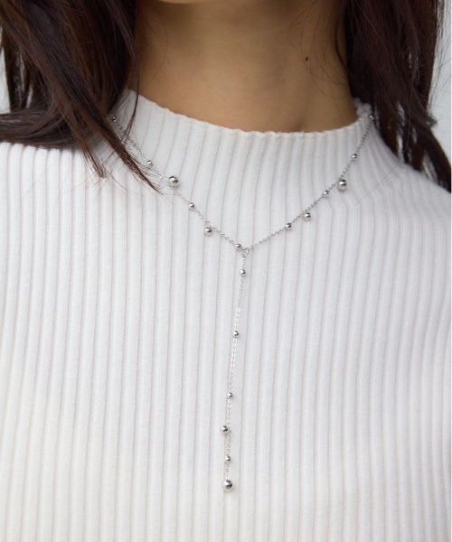 ■ランダムメタルボールチェーンネックレス ■ポイントメタルの粒モチーフを等間隔にあしらったY字シルエットが特徴的な1連ネックレス。縦ラインを強調するデザインが、デコルテをすっきりと見せ、女性らしい抜け感と洗練された印象を演出します。■ディテール繊細なチェーンに、丸みのあるメタルビーズを配置した上品なY字ネックレス。胸元で揺れるドロップチェーンが視線を集め、シンプルながら印象的なスタイリングが叶う1本です。シャツやジャケットのVネックラインに合わせやすく、きれいめにもモードにも映える万能デザイン。軽やかでデイリー使いもしやすく、コーディネートをさりげなく格上げするアクセントアイテムです。■素材金属アクセサリーの場合、消毒液に触れたり、皮脂および汚れの蓄積により、変色や変質する場合がございます。定期的にふき取りのメンテナンスをお願いします。消毒液が製品に直接かかる事が無いようご注意下さい。[注意事項]※画像の商品はサンプルです。実際の商品と仕様、加工が若干異なる場合があります。※画像の商品は光の照射や角度、お使いのモニター環境により、実物と色味が異なる場合がございます。※着用、お取り扱いの際は、アテンションタグをご確認ください。[お気に入り登録のおすすめ]■商品のお気に入り登録お気に入りアイテムの再入荷・在庫1点などの通知を受け取ることができます。■ブランドのお気に入り登録新作アイテムの入荷や人気アイテムの再入荷、おすすめトピックスなど、いち早くブランドの情報を受け取ることができます。AUTUMN & WINTER ( 秋服 / 冬服 )※こちらの商品はAZUL BY MOUSSY独自の採寸方法となっています。本サイトのサイズガイドと採寸方法が異なる場合がありますのでご了承ください。
