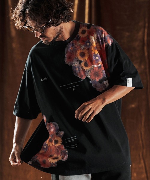 181cmのモデルがMサイズを着用。鮮やかなボタニカル柄をプリントしたTシャツ。あえてイレギュラーな位置にプリントを配置したギミックデザイン。視線を引きつけるアート性と、スタイリングのアクセントとしての実用性を兼ね備えた一枚です。【デザイン・ディテール】プリントの配置に遊び心を加えたデザインが特徴。インクジェットプリント。【ファブリック】40番手のコットンコーマ糸を双糸にして編み立てた、上品な表情の天竺素材を使用。しっかりとした肉感がありながらも、なめらかな肌触りと透け感のない安心感が魅力。【シルエット】身幅・肩幅にゆとりを持たせたリラックスシルエット。程よい落ち感としっかりとした生地感が相まって、1枚で着てもサマになるバランスに。カジュアルながらも洗練された印象を与えるフォルムです。※着用画像と商品単体画像で色が異なる場合がございます。※商品単体画像を実物により近づけております。