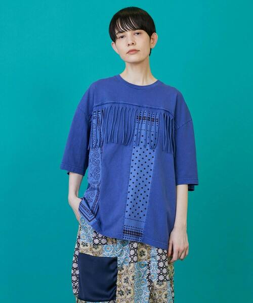 【素材】 ガシッとした中肉の綿天竺素材とシャツ生地にオリジナルのバンダナプリントを入れた素材を組み合わせて、色落ち感のある特殊な染めで着古したニュアンスを表現しています。 特殊な染めの為、色落ちや色移りがありますがその独特の色の変化をお楽しみください。 【デザイン】 ワイド目なシルエットのTシャツをベースに大胆に切り替えを入れ、そこにカットオフしたフリンジ状のアクセントを加えて動きのあるアイテムに仕上げています。 製品で特殊な染めを入れることで独特の着古し感やくたびれた表情を作り、キメ過ぎない程よいヌケ感も出しています。 *製品で特殊な染めを入れた企画です。色落ちや色移りがありますので、お洗濯の際は単体で洗ってください。また、フリンジ部分が繊細な為、ネットに入れて洗うことをお勧めします。 *こちらの商品はユニセックス商品です。 【ブランド情報】 FRAPBOIS/フラボア 2001年にブランドスタート。 「大人げない大人の服」をコンセプトに、大人が着るリラックスしたデイリーウェアを提案するコレクションブランド。 レディースとメンズのアイテムをご用意しています。 ---------------------------------------------------------------------- 【お気に入り登録】がおすすめです。 ■商品のお気に入り登録 再入荷、残り1点、セールなどの通知を受け取ることができます。 →商品ページ ♡ をクリック ■ショップのお気に入り登録 新商品や再入荷、セール、クーポン配布、ショップニュースなど、いち早くショップの情報を受け取ることができます。 →「♡お気に入りショップに追加」 をクリック ----------------------------------------------------------------------