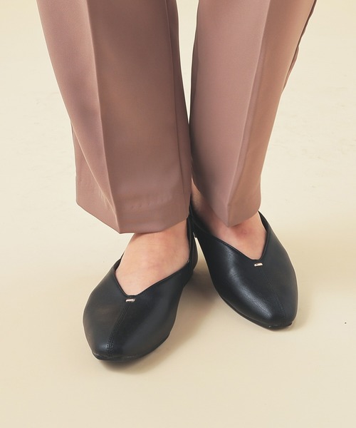 ラクラク歩けるおしゃれシューズ 【デザイン】 V字のカッティングで女性らしくすっきりとしたデザイン。 さっと履けて歩きやすいフラットヒール。 【素材・機能】 フェイクレザー素材とスエード調素材。 インソールはやわらかクッション。 かかとには、脱げにくく安心の滑り止め付き。 【スタイル】 カジュアルにもきれいめにも合わせやすく、デイリー使いに大活躍。 ※湿度・摩擦により多少色落ちする可能性があります。 品番:235-134-9277