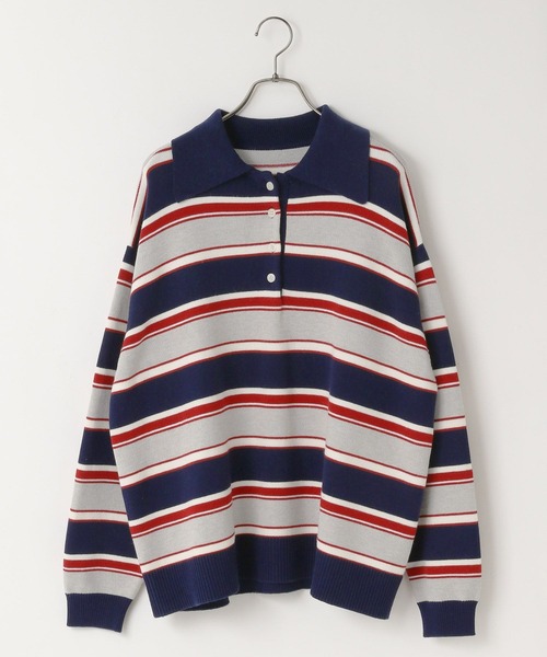 ■素材■ すっきりとした目面に、柔らかく程よい厚みで透け感無く まるでスウェットのような安心な着心地の素材です。 ■デザイン■ カジュアルな印象のラガーシャツを、ニット素材で仕上げることで、 より普段のコーディネートにMIXしやすいムードに仕上げました。 少しゆったりとしていて女性らしいシルエットもポイントです。 ■スタイリング■ カジュアルにデニムやチノパンツ合わせはもちろん、 スカート合わせでスポーツ×フェミニンなMIXコーデもおすすめです。