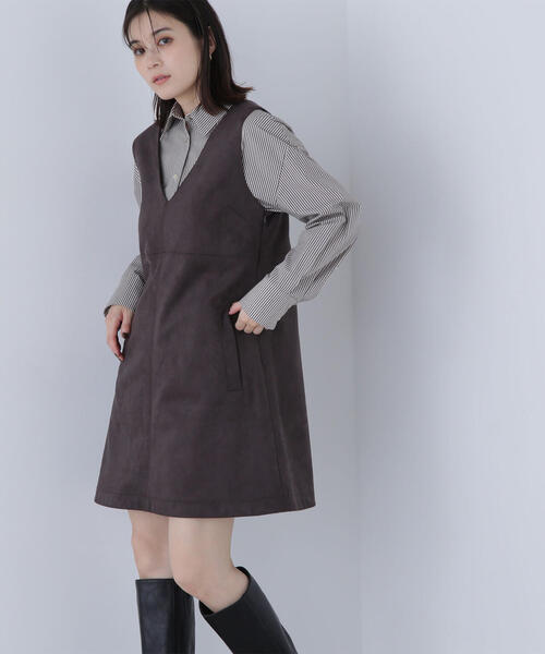 <お出かけ・デイリーにおすすめ> トレンド感のあるフェイクスウェードを使用したミニ丈ジャンスカ。切り替えに入れたステッチディテールとボクシーなシルエットに拘ったデザインです。ロングブーツはもちろん、タイツやロングソックスにショートブーツを合わせると、今年らしいコーディネートが楽しめます。 <素材> キレイな表面感のフェイクスウェード素材を使用。体のラインを拾いにくい肉感です。 <詳細> 仕様・左ファスナー 裏地・あり 透け感・なし / 光沢・なし / 伸縮性・ややあり 生地の厚さ・普通 ※モデルの着用画像の場合、光の当たり具合により、実際の色味と異なって見えることがございます。色味は、商品単体の画像をご参照ください。 【ZOZOでのお買い物をもっと楽しむために!】 ■ブランド・ショップのお気に入り登録 ・いち早く新作アイテムや限定クーポンなどのお得な情報を受け取ることができます! ■商品のお気に入り登録 ・完売商品の再入荷通知や、残り1点の通知、各種セール通知も受け取ることができ、よりお得にお買い物頂けるチャンスがあります!