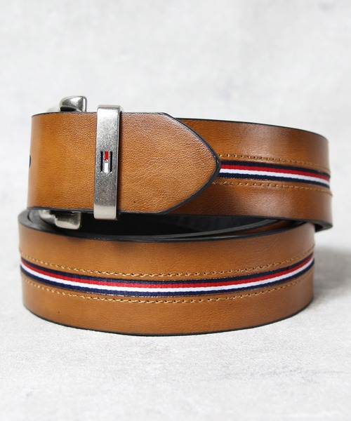 トミーヒルフィガーらしい洗練されたデザインが光る、リバーシブル仕様のレザーカジュアルベルトのご紹介です。■DETAIL表面はブラウンカラーにブランドを象徴するリボンデザインを施し、裏面はシンプルなブラックで構成された2WAY仕様。バックル部分はひねるだけで簡単に裏返せる回転式で、シーンやコーディネートに応じた使い分けが可能です。金具には「HILFIGER」のロゴ刻印、ベルトループ近くにはフラッグロゴのオーナメントを配置し、細部までブランドのこだわりを感じさせる仕上がり。素材には、傷や汚れに強いシンセティックレザー(合成皮革)を使用し、扱いやすさも抜群です。■POINTジーンズやゴルフスタイルなど、カジュアルシーンにぴったりの万能ベルトです。1本で2通りの使い方ができるため、旅行や出張など荷物を減らしたい場面にも重宝。高級感あるデザインは、大切な方へのギフトにもおすすめです。【ベルトカット、バックル取り外し】不可------------------------------重さ 約169g------------------------------◇おすすめ季節◇オールシーズン------------------------------8(eight):【エイト】東京・原宿のストリートからトレンドアイテムををメインにユーズドライクな着こなしをMIXした、手軽でデイリーユースな“リアルクローズ”を提案。ユニセックスデザイン・ジェンダーレスファッションを取り入れた進化し続けるセレクトショップを目指しています。------------------------------TOMMY HILFIGER:【トミーヒルフィガー】永遠のアメリカンクラシックをベースにモダンなひねりを加えたデザインが人気のトミーヒルフィガー。都会的で洗練されたメンズ・ウィメンズに加え、チルドレン、ゴルフライン、そしてよりカジュアルなデニムラインと豊富なカテゴリーが揃うグローバルブランド。------------------------------※一部セレクト商品には8(eight)と別のタグが記載されている場合がございますが、8(eight)で販売している商品となりますので問題ございません。※生産時期により、色・サイズ・デザインが多少異なる場合がございます。あらかじめ御了承下さい。【お買い物をお楽しみいただく為に!】▼商品のお気に入り登録完売カラーの再入荷通知や、ラスト1点の通知、セールの通知も受け取ることができます。▼ブランドのお気に入り登録新商品や再入荷等、いち早くブランドのお得な情報を受け取ることができます。