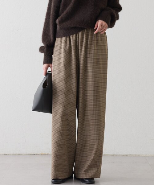 シーズンムードを高めてくれるチェックパンツ●デザイン・トラディショナルな柄が上品なチェックパンツ。・無地ライクに使えて様々なアイテムと合わせやすい汎用性◎・シンプルなワイドシルエット・イージーなゴムギャザー仕様でリラックスした履き心地・裏地なし・前スラッシュポケット●素材ポリエステル 100%・イージーケア性に優れ、ピリングもしにくい機能性の高い、ウールライクなポリエステル素材を使用・ナチュラルストレッチがあり柔らかなふくらみがあるのが特徴洗濯方法:洗濯可(湯温30度まで)透け感:なし裏地:なし伸縮性:あり生地の厚さ:ふつう光沢:なしファスナー:なしポケット:あり--------------------------------------------------------------------------------【お買い物をもっと便利に楽しく♪】『♡』をクリックでお気に入り登録✓「商品のお気に入り登録」で・・・ラスト1点や再入荷の通知が届きます。登録して頂いた商品だけが対象となる、あなただけのタイムセールが開催されることも!✓「ブランドのお気に入り登録」で・・・新商品や再入荷など、いち早くブランドのお得な情報を受け取ることができますので、ご登録をおすすめします!--------------------------------------------------------------------------------【注意点】※画像の商品は光の照射や角度、お使いのモニター環境により、 実物と色味が異なる場合がございます。※入荷状況により、お届け予定が前後する場合があります。※お客様への発送が店頭販売より遅れる場合もあります。※追加生産商品は、一部の店舗、通販で販売中の場合がございます。 予めご了承下さい。----------------------------------------------------------------------