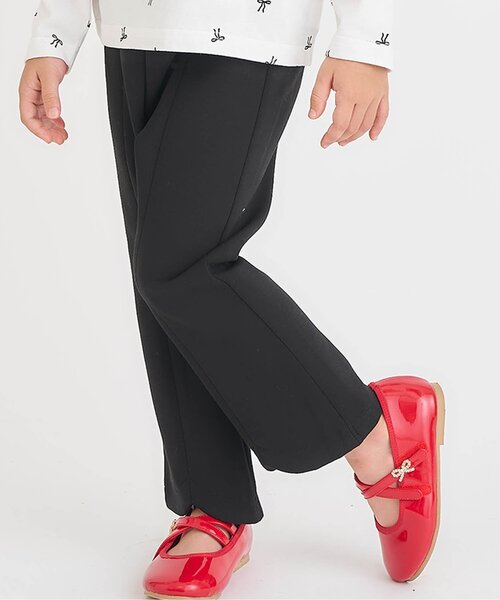 apres les cours(アプレレクール)のパンツ「フレアパンツ」は、ナチュラルなスタイルにさりげなくデザインをプラスしたおしゃれアイテム*【取り扱い表示】40℃を上限に洗濯機で洗濯、デリケートアイテムモード、ネット使用、漂白剤禁止、色物は同系の色と一緒に、洗濯後直ちに取出し、タンブル乾燥不可、日陰で吊り干し、アイロン禁止、商業ドライクリーニング不可【ご注意事項】この商品は着用中の摩擦や洗濯により毛羽の乱れ、毛羽脱落、毛玉が生じることが有ります。できるだけ美しくご利用頂く為に次のことにご留意下さい。○毛玉は毛玉取り器またはハサミで丁寧にカットして下さい。○毛羽が他に付着した際はテープやブラシで除去して下さい。○他の製品とは洗わず、単独でお洗濯して下さい。○タンブル乾燥はお避け下さい。※商品により多少の誤差が生じる事がございます。あらかじめご了承下さい。※ご使用のパソコンやブラウザの環境により、実際の色とは多少異なる場合がございます。※モデル着用写真についてはイメージの為、実際の商品とカラーや仕様が異なる場合がございますので、商品画像をご覧ください。【 apres les cours -アプレレクール- 】「キオク いろどる、こどもふく。」大切なキオクを彩る、お気に入りの一枚。「アプレ レ クール」は独自の色づかいやテキスタイルで日々をトクベツに過ごせるそんな「一枚」をお届けします。