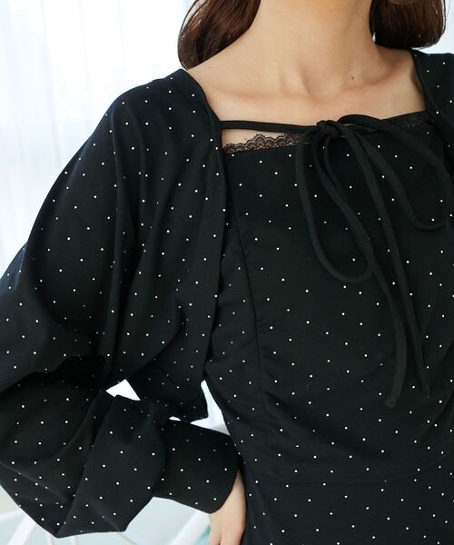 キラリと煌めくラインストーンにときめく♪キャミとボレロの上品レイヤードセット■デザインキラキラと輝くラインストーンが全体にあしらわれた、着るだけで主役級のキャミソールとボレロの2点セットが登場。とろりと柔らかなカットソー素材で着心地抜群。キャミの胸元には繊細なレースをあしらい、フェミニンさをプラスしました。セットで着れば簡単に上品レイヤードコーデが完成し、それぞれ単品使いもOK!毎日のコーデに“キラリ”と輝くアクセントをプラスできます♪■サイズ感キャミは身体にやさしくフィットするサイズ感。ボレロはゆとりがあり中にも着込みやすくなっています。カットソー素材で着心地抜群です。■スタイリングセットでの着用はもちろん、単品でも着られるのが嬉しいポイント。デニムパンツと合わせて、程よい肌見せの大人カジュアルに。ロングスカートやタイトスカートと合わせてフェミニンにも◎1057040112 ラインストーンティアードスカパンとセットアップでの着用もおすすめです。・・・・・・・・・・・・・・・・・・・・・・透け感:なし裏地:なし伸縮性:あり光沢感:なし生地の厚さ:普通・・・・・・・・・・・・・・・・・・・・・・■商品のお気に入り登録 再入荷通知やのこりわずか、お得なプライスダウンの情報も受け取ることができます。ぜひご登録ください◎※サンプルでの撮影の為、製品と仕様が異なる場合がございます。※商品の色味は、撮影場所や光のあたり具合などにより色味が違って見える場合がございます。また、お客様のお使いのモニター環境などにより色味が異なって見える場合がございます。予めご了承の上ご注文下さい。