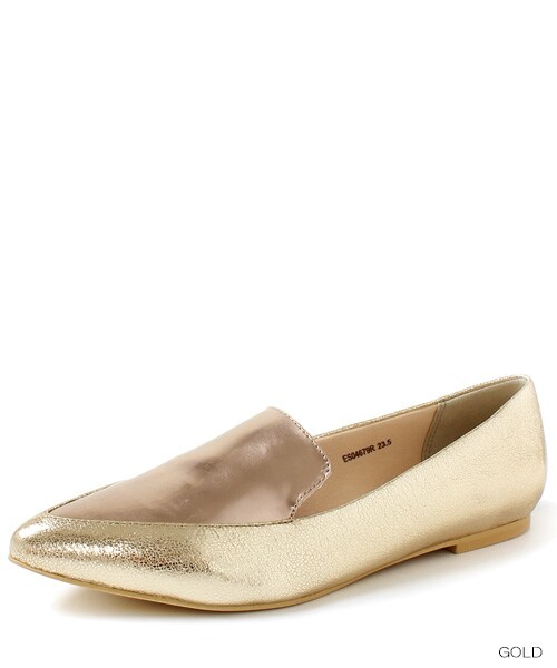 素材:SNAKE⇒合成皮革(スムース・エナメル)その他カラー⇒合成皮革(メタリック)ポインテッドトゥでスマートなフォルムのフラットシューズです。プレーンなデザインながらメタリックとパイソンで存在感は抜群です。いつものスタイルにプラスするだけで、グッと旬顔なコーディネートが決まります。