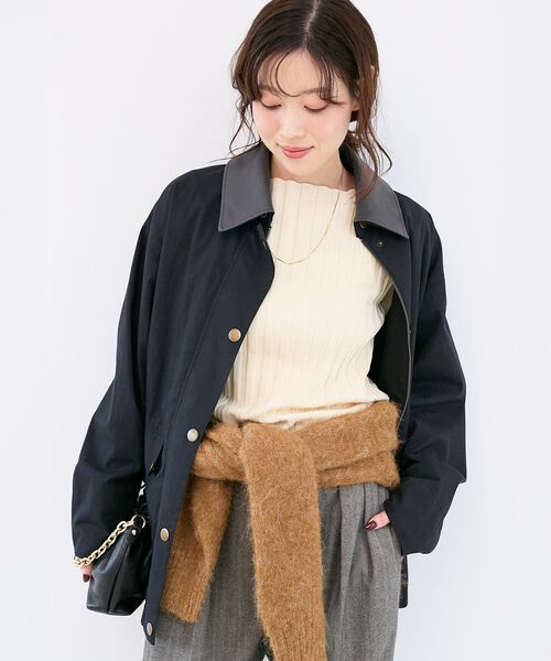 トラッドな印象の素材切り替え襟のジャケット。●ポイントコットンナイロン素材で軽さがありつつ程よい張り感もある素材を採用し、総裏で長い季節楽しめる仕様にしています。デザインポイントは取り外し可能なフェイクレザーの襟。●おすすめコーデレザーの襟の切り替えでブリティッシュな雰囲気を楽しんだり、襟を取り外してシンプルなジャケットとして楽しんだりが可能です。甘めなアイテムのハズしにも使えるので、カジュアル派も綺麗め派もコントラストのある着こなしを楽しんでもらえる1枚です。※取り扱いについては、商品についている洗濯表示にてご確認下さい。※照明の関係により、実際よりも色味が違って見える場合がありますまたパソコン・スマートフォンなどの環境により、若干製品と画像のカラーが異なる場合もございます。※商品の色味は、商品アップ画像をご参照ください。【注意事項】・画像の商品はサンプルです。・サイズ表記はあくまで目安となります。実際の商品と仕様、加工が若干異なる場合があります。