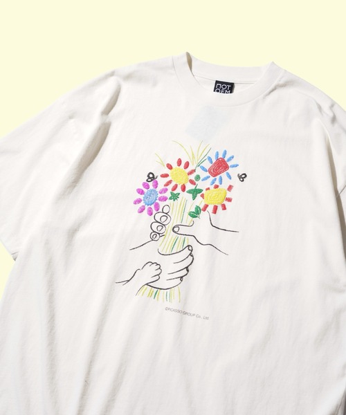 NOT OEM / ノットオーイーエム FLOWER TEE ピカソ ブーケ フラワー 刺しゅう Tシャツ80‘s-90’sのアメリカ古着のTシャツを完全に再現したこだわりのビンテージ仕様フロントは平和や友情をイメージしたピカソの”ブーケ”を、刺繍に見立てた発砲プリントで表現。・リブは存在感ある太めのシングルステッチ・袖と裾の縫製は天地縫い・絶妙な古着感を出すために、あえてピグメント(顔料)加工にはせずに製品反応染めにてウォッシュ加工※天地縫いについて現在では天地縫いの縫製ミシンは使われることはかなり少なくなっていて、ミシン自体を所持されている縫製工場さんが少ないです。扱える熟練の縫製職人さんも激減してきているのもあり、技術的に未熟な方が天地縫い始末の縫製をする場合は表に出るステッチの巾にバラツキが出たり、縫製が出来ていない状態の目飛びを起こしてやすくなります。始めと終わりをきれいに縫製するのは非常に難しく気を使わなければなりません。ですが、NOTOEMでは徹底的に仕様にはこだわり、手間を惜しまずこだわり抜いて天地縫いにしております。【NOT OEM / ノットオーイーエム】◾️SINCE 2024◾️BRAND CONCEPT日本のアパレル業界のOEM思考を根本から覆すように、心から自分たちの良いと思う企画、デザイン、商品をゼロから作るそんな姿勢をブランド名に込めました。OEMでリアルな要求に本気で答えながらも、様々な苦境を乗り越えてモノ作りをしてきた集団だからこそ、そこに敬意を払いながらも、それを超えて一線を画したモノ作りをしていきます。■商品のお気に入り登録方法(ハートマークをクリック)完売カラーの再入荷通知や、ラスト1点の通知、値下げ時のセール通知も受け取る事が可能です!■C.E.L.STOREのお気に入り登録シーズン毎の新入荷情報はもちろん、再入荷商品やブランドのお得な情報を受け取る事ができます。