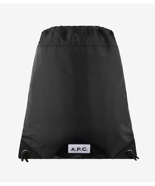 ナイロンキャンバスのユニセックスナップサック.*ナイロンキャンバス. *肩掛け可能. *ドローストリング開閉. *内側にファスナーポケット1つ. パッチポケット2つ. *前にA.P.C.ロゴ入りマジックテープのラベル.