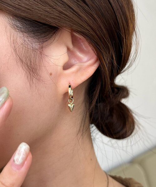 ミニサイズのハートモチーフが大人可愛いピアス 人気のハートモチーフを、フープに通したシンプルなデザイン。 小ぶり×メタル素材のハートモチーフは可愛くなりすぎず、大人の女性にも着けていただけます。 ハートモチーフを外すとシンプルなフープピアスとしても使える2WAY仕様。 コーディネートを選ばず、デイリー使いしやすいデザインです。 【GOLDY/ゴールディ】 自分のファッションスタイルを 遊び心いっぱいに楽しむ女性たちへのアクセサリーブランド ※撮影場所やお使いのモニター環境により若干お色味が異なる場合がございます。 特にロケの撮影では明るく見える傾向にございます。 ※商品はサンプルで撮影をしております。若干の仕様が変更になる場合がございますので予めご了承の上ご注文くださいますようお願いいたします。 ▼商品のお気に入り登録 完売カラーの再入荷通知や、ラスト1点の通知、セールの通知も受け取ることができます。 ▼ブランドのお気に入り登録 新商品や再入荷など、いち早くブランドのお得な情報を受け取ることができます。