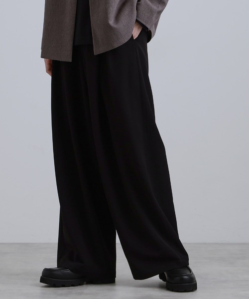 【素材】 ポリエステルとレーヨンをかけ合わせたウール調の合成繊維を使用しています。 程よい光沢感が特徴です。 シーズンを問わずお使いいただけます。 ベーシックな無地タイプとモードな印象のストライプ柄をご用意しています。 【デザイン】 トレンドスタイルを取り入れるのにおススメのバギースラックス。 スッキリとした腰回りと太ももから裾へ広がるシルエットと、フロントに大きく入ったタックがポイント。 更に後ろ身頃にもカッティングデザインを入れることで、全方向から見てもキマるデザイン性の高い一本です。 【仕様】 ・ポケット数:横×2 後ろ×2 ・前ファスナー ・裏地なし ※オフホワイト(003)はやや透け感があります。 【推奨サイズ】 01サイズ(S):160~170cm 02サイズ(M):165~175cm 03サイズ(L):170~180cm ※標準体型を基にした目安になります。 - BRAND CONCEPT - 時代を超えて支持されるトラディショナルなアイテムをベースに、アソビ心とストリートの自由な発想を取り入れ、日本独自のミックススタイルを提案します。 【気になる商品はお気に入り登録をおススメ】 ▼商品のお気に入り登録 完売しているカラーの再入荷通知や、ラスト1点、セールの通知をお知らせいたします。 ▼ブランドのお気に入り登録 新商品や再入荷など、いち早くブランドの情報を受け取ることができます。 ※照明の関係により、実際よりも色味が違って見える場合があります。また、パソコン・スマートフォンなどの環境により、若干製品と画像のカラーが異なる場合もございます。 モデル情報:身長180cm B89 W72 H93 着用サイズ:03(L) 店舗へのお問い合わせ商品番号:170-74401 ●製品寸法: 01(S):W70cm 股下73cm 前股上29cm 渡り幅41cm 裾幅31cm 02(M):W74cm 股下74cm 前股上29cm 渡り幅42cm 裾幅32cm 03(L):W78cm 股下76cm 前股上30cm 渡り幅44cm 裾幅32cm 備考: