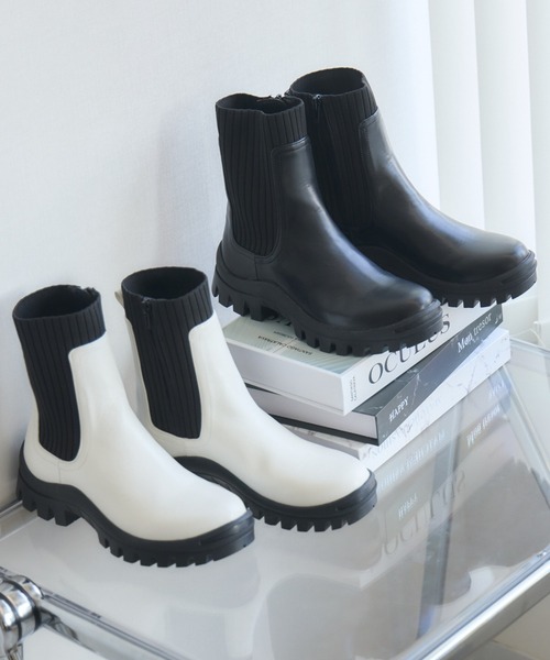 「足に優しい」をテーマに、デザイン性と快適な履き心地を徹底的に追求した、meeny minyオリジナルのニットソックスブーツが遂に完成!足首部分には、伸縮性に優れた柔らかなリブニットを贅沢に採用し、気になる靴擦れや締め付け感を解消。ぐーんと伸びる素材が、一日中履いていても疲れにくい、ストレスフリーな履き心地を実現。すっきり感を追求して緻密に設計されたフロントラインが、脚全体をすらりと長く見せる視覚効果に。トレンド感のある厚底ソールは、デザイン性だけでなく機能性も抜群。地面からの衝撃を優しく吸収し、足にかかる負担を大幅に軽減します。揺れるフレアスカートでフェミニンに、タイトスカートで都会的に、そしてあらゆるシルエットのパンツスタイルをスタイリッシュに格上げする万能ブーツ。かかと(ソール)の高さ 3cmブーツ丈 15.5cm筒周り27cm