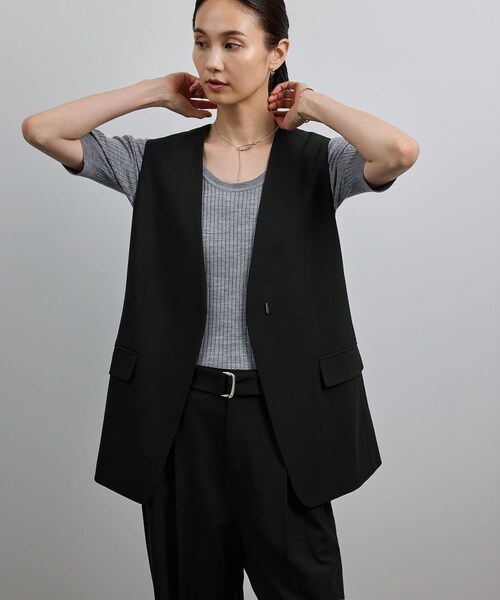 ー Effortless Elegance ー(エフォートレス エレガンス) 「忙しい毎日にちょうどいい。ラクしておしゃれが叶う服」 気負わず、気張りすぎないけれど、女性らしさのあるアイテムのラインアップ。ON/OFF問わず着まわせて、お手入れも簡単なイージーケアアイテムで、毎日のおしゃれをもっと快適に。 【デザイン・シルエット】 ノーカラーでインナーを選ばず合わせやすいデザイン。ウエストにさり気ないダーツを入れてラインを美しく見せてくれます。シンプルなシルエットで羽織りやすく、幅広いシーンで着やすい汎用性の高い1枚です。 【おすすめのスタイリング】 Tシャツやブラウスとの合わせや、同素材のパンツとセットアップで着こなすのもおすすめです。 【素材】 ポリエステル×ウール混紡の上質ツイル(綾織り)素材を使用。サイロスパン糸ならではの上品な光沢感としなやかな質感があり、柔らかな風合いに仕上げています。。 ---------------------------- 透け感:なし 裏地:あり 伸縮性:ややあり 光沢感:ややあり 生地の厚さ:中肉 ポケット:あり 開き方:ホック 洗濯:手洗い可能 ---------------------------- 【モデル情報】 モデル身長:171cm 着用サイズ:38 【ウール混ツイル シリーズ】 同素材でセットアップでも着られる ウール混ツイル ジレベスト(品番:GGJ75080) ウール混ツイル ベルト付きワイドパンツ(品番: GGH75090) がございます。 ※画像の商品はサンプルです。実際の商品と仕様、加工、サイズが異なる場合がございます。 ※撮影場所やライティング、お使いのモニター環境によって色の見え方が異なる場合がございます。 ※商品のカラーは画像の色味をご参照ください。動画は仕様説明のため、色味が実物と異なる場合がございます。