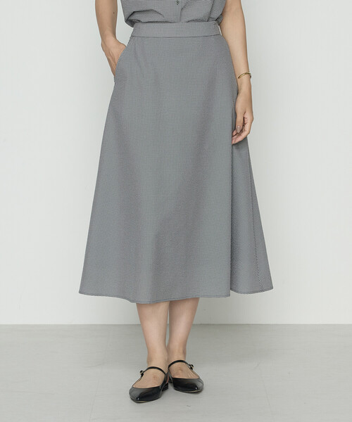 《デザイン》すっきりとした印象のギンガムチェックスカートです。甘すぎないシンプルなフレアシルエットがコムサらしい一着です。ウエストはゴムを入れ、リラクシーな着心地です。素材の特長である風通しの良さで暑い夏にぴったりの一枚です。同素材のブラウス(商品番号:15-73BM03-205)とセットで着用して頂くのもおすすめです。《素材》綿混のシアーサッカーギンガム素材です。特殊技術による非常に小さい通気孔による涼しさと天然タッチで非常に軽いのが特長です。撥水、2WAYストレッチ、防シワ、ウォッシャブルを備えた機能性素材は夏に最適です。お手入れ方法:手洗いOK《セットアップ》同素材のブラウス(商品番号:15-73BM03-205)とセットでコーディネートして着用して頂くのもおすすめです。※在庫がない場合もございますので、予めご了承くださいませ。