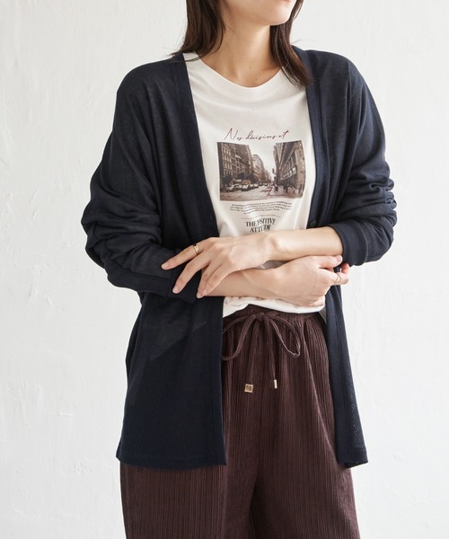 ほどよい透け感が涼しげな、シアーフライス素材のライトカーディガン。 ゆったりとしたドルマンスリーブと、トッパー風のワンボタンデザインで、羽織るだけで抜け感のあるスタイルに。 ヒップラインまで隠れる丈感で、気になる腰まわりもしっかりカバーします。 【素材】 しっかり感のある膨らみがありますが、通気性の良い透かし編みのニットソー。 【デザイン】 ボタン使いがアクセント。 トッパー風のシルエットで、軽く羽織れるシンプルデザインです。 【ikkaポイント】 ・暑い時期に羽織りやすいライトカーデは通気性の良い素材を採用 ・トッパーにワンボタンが付いたVネックデザイン ・腰回りをカバーする着丈が体形カバーに効果的