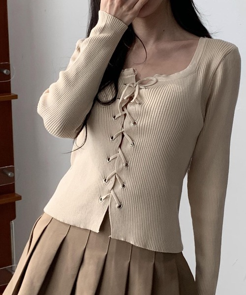 ■大人気のレースアップデザインのリブニットの長袖トップス ■レースアップの華やかなデザインに、クロップド丈でスタイルアップ効果も期待できるデザイン。 リブニットでストレッチが効いているので着心地も抜群♡ 様々なシーン、トップスにインナーにと様々なスタイルに使えるアイテム♡ 【-ARCADE Limited Line-】 時代にあった最先端ファッションを取り入れた海外からセレクトしたインポートのプレミアムライン