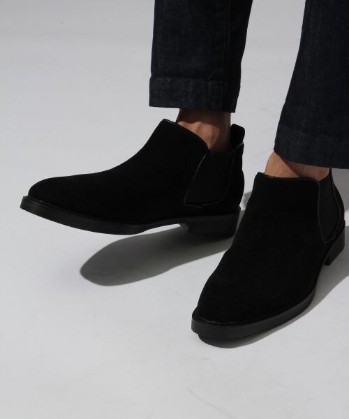 秋冬の雰囲気漂うフェイクスエード素材のサイドゴアブーツ。程よい丈感が魅力的。定番のブラック、ブラウンに加えてポイントになるキャメルの3色展開。