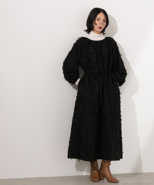 <petit size>PSサイズとは....通常のSサイズやMサイズから着丈などの長さを短くリサイズし、150cm前後の低身長さんにもバランスよく着用いただけるサイズに仕上げています。限定店舗のみの展開です。PSでのサイズ表記になっています。フリンジ感のあるカットジャガード素材を使用した秋のカフタンワンピース。肌離れするボリュームのあるシルエットで、体型カバーしながら着られます。華奢な共地リボンでウエストマークも◎。抜け感のあるバックデザインもアクセントになっています。袖口にゴムが通っているので、袖をたくし上げると温度調節がしやすいです。ワンピースとしても、デニムを穿いてレイヤードするMIXスタイルもおすすめです。<素材>フリンジ感のあるカットジャガード素材を使用しています。<詳細>仕様・開閉なし裏地・なし透け感・なし / 光沢・ややあり / 伸縮性・なし生地の厚さ・普通 ●取り扱いについては、商品についている品質表示でご確認ください。●撮影はサンプル商品で行っている為、仕様とサイズが異なる場合がございます。●スタジオ及び屋外で撮影した着用画像は、光の当たり具合やご覧のモニターによって色味が違って見える場合があります。予めご了承ください。●生産時期により色・素材・サイズ感など多少異なる場合がございます。予めご了承ください。〇返品・キャンセルについて・着用・洗濯後の返品・ご交換は致しかねます。・商品到着後、着用または使用前に商品を確認して頂きますようお願いいたします。≪お買い物をよりお楽しみいただくために!≫・「商品のお気に入り登録」再入荷通知や、ラストの通知、セール通知も受け取ることができます。・「ブランドのお気に入り登録」新商品や再入荷をはじめ、タイムセールやクーポンなどいち早くブランドお得な情報を受け取ることができます。