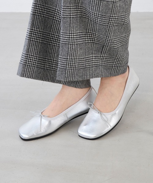 モダンな艶めきが足元に洗練を添える、スムース素材のスクエアバレエシューズ。 ミニマルでシャープなスクエアトゥに、程よい光沢感が映えるメタリックシルバーが特徴です。 さりげないリボンディテールが女性らしさをプラスしつつ、カジュアルにもドレッシーにも合わせやすい一足。 シーズンレスでコーディネートに抜け感を与えてくれる、ワードローブに加えておきたい一足です。 メーカー品番:ZH-25S016 メーカー表記カラー:PLATA 【staff comment】 《スタッフ:S》 着用サイズ:36/普段サイズ:23~23.5cm 普段のサイズでぴったりです。 つま先から甲部分やフィットします。 生地も柔らかくクッション性があり、安定感のある履き心地です。 《スタッフ:K》 着用サイズ:37/普段サイズ:23.5cm 私は甲高め・足幅広めなので、36サイズだとつま先部分が窮屈でしたので37サイズを着用しました。 かかと部分がやや余るので、中敷きやソックス等で調整して履いています。 とても柔らかく軽いので、デイリー使いにもぴったりです。 -------------------------------------- 【REMME / レメ】 REMME(レメ)はシンプルなデザインとはき心地の良さを求めたスペインのシューズブランドです。スペインのバレンシア州アリカンテはシューズ・履物産業が盛んです。長年シューズ産業に携わった熟練した職人が1つずつ丁寧に作られ、美しいカッティングが魅力。素材には柔らかなレザーを使用しており足馴染みが良く、日本人の女性にも履きやすいデザインです。 -------------------------------------- *商品画像はできる限り実物の色に近づけるよう徹底しておりますが、お使いのデバイスのモニター設定、お部屋の照明等の閲覧環境により実際の色味と異なって見える場合がございます。 *画像の商品はサンプルです。実際の商品と仕様、加工が若干異なる場合があります。予めご了承くださいませ。 ▼商品のお気に入り登録 お気に入りアイテムの値下げ・再入荷・在庫1点などの通知を受け取ることができます。 ▼ブランドのお気に入り登録 新商品や再入荷、クーポン配布などのお得な情報を受け取ることができます。