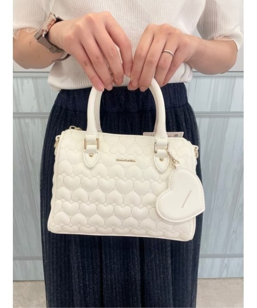 ◇SAMANTHAVEGA(サマンサベガ)のエターナルハートキルトボストンバッグ エターナルハートキルトシリーズに 新色と新型が追加されました。 今期にはトレンドのバニティ型と、スマホショルダーを追加して 汎用性の高いコレクションとなっています。ぷくぷくしたハートが可愛い!唯一無二のサマンサアイコン、ハート キルトを全面に使用した特別感のあるシリーズです♡ ▽デザイン ・ハート柄のキルティングがラブリーで可愛い♡ ・マットな質感で高級感があります。 ・トレンドのボストン型でカジュアルや韓国スタイルなど幅広い系統のスタイリングに合わせていただけます。 ▽機能性 ・ショルダー付きで2WAYで使用できます。 ・内装は薄マチポケットが1つ ・ハート型のミラーは取り外し可能です。 【対応しているもの】 ・長財布 ・ペットボトル350ml FREE:幅21cm/高さ15cm/マチ9.5cm/持ち手上がり8.5cm/ショルダー最長134cm/ショルダー最短122cm/重さ335g/[ミラー]タテ6.5cm/ヨコ7.5cm/ --------------------------------------------------- SAMANTHAVEGAの【♥お気に入り】登録がオススメ ---------------------------------------------------- ■アイテムを【♥お気に入り】に追加 再入荷/ラスト1点/予約受付開始などのお知らせをお届け ■ショップを【♥お気に入り】に追加 新商品/再入荷などの最新情報やお得な情報ををいち早くお届け SAMANTHAVEGAの新着情報をお見逃しなく♡ ---------------------------------------------------- ■SNS 新着アイテムやお得なセール情報を配信中♪ コーデのご参考にも...♡ 【公式 Instagram】 @samantha.vega_official SAMANTHAVEGAの新商品や再入荷などの最新情報を配信。 @st.officialonlineshop オンラインショップの新商品やお得情報などを随時配信。